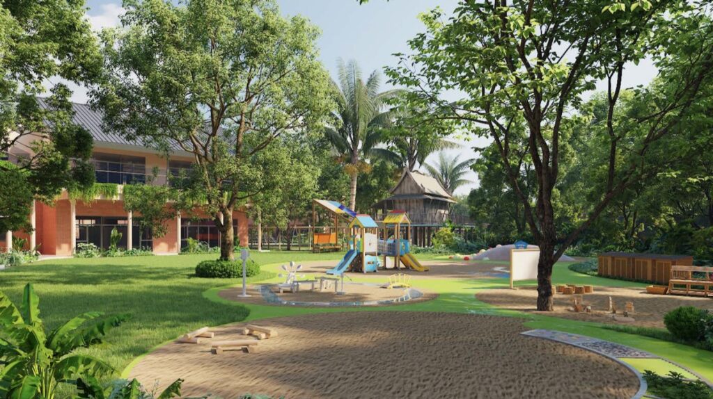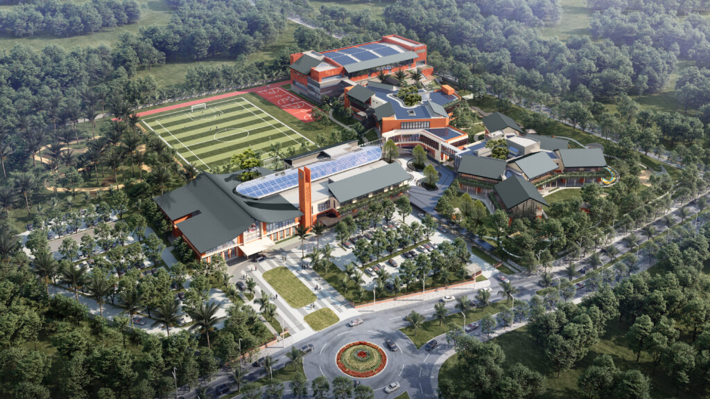 生徒中心に設計された広々とした緑豊かな低層な建築は、ダリッジの伝統とタイの特色、現代デザインを融合させています。