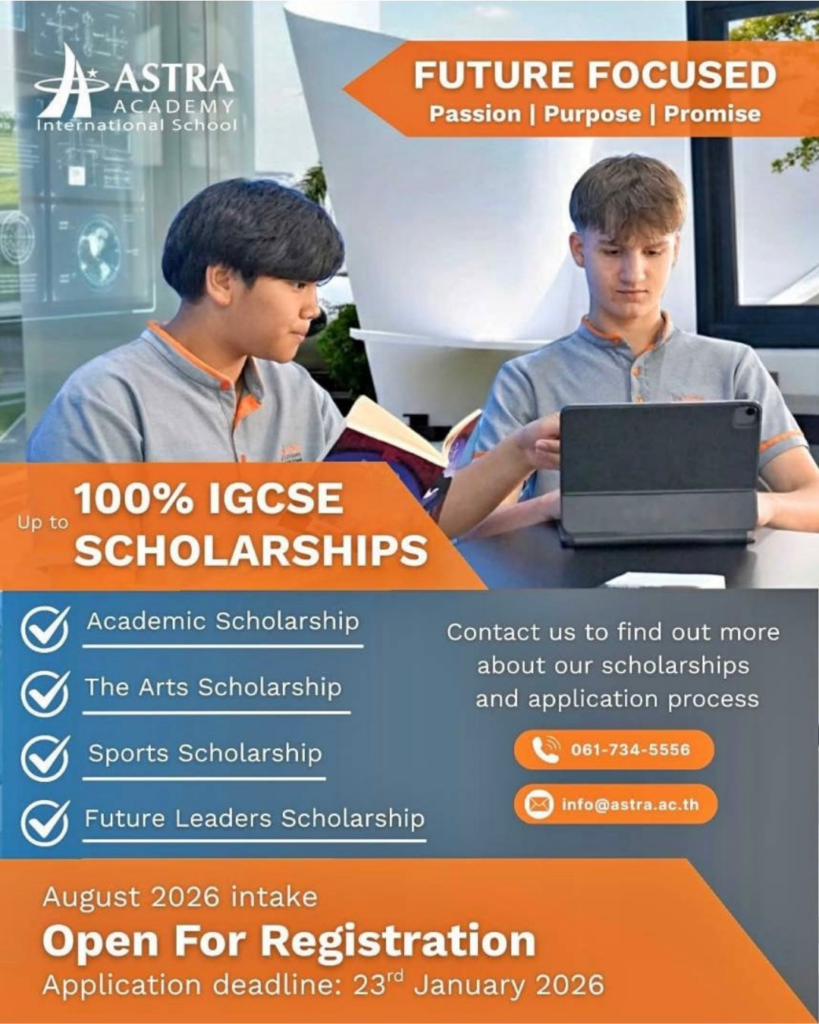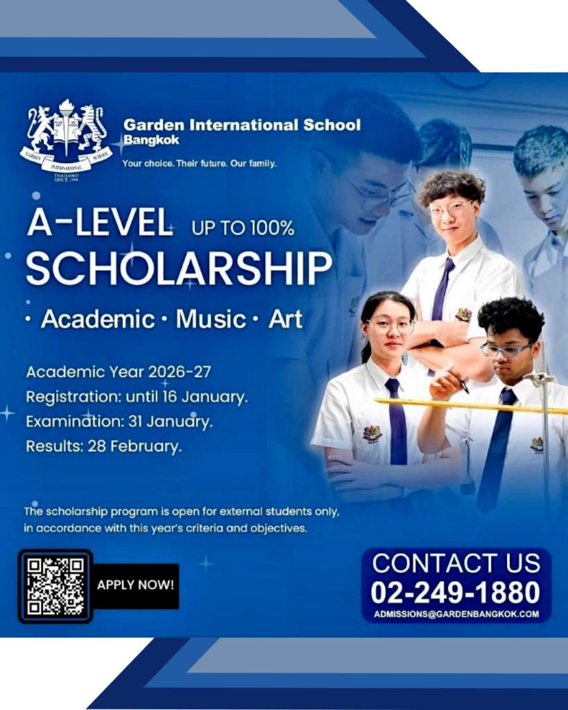 ガーデン インターナショナル スクール、バンコクの 2026/2027 学年度 AS レベル (Year 12) 奨学金の申請受付が開始されました。今すぐ申請してください。