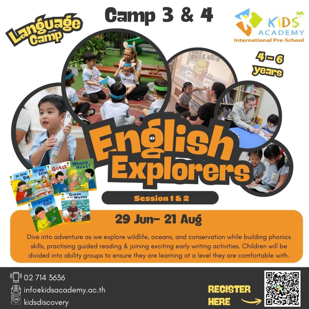 | English Explorers camp2 | 2026年7月27日~31日 2026年8月3日~7日 2026年8月10日~14日 2026年8月17日~21日 | 4歳〜年長 | 8時半〜1時 | 4週間 35,000バーツ (約171,500円) 1週間 10,260バーツ (約50,274円) |